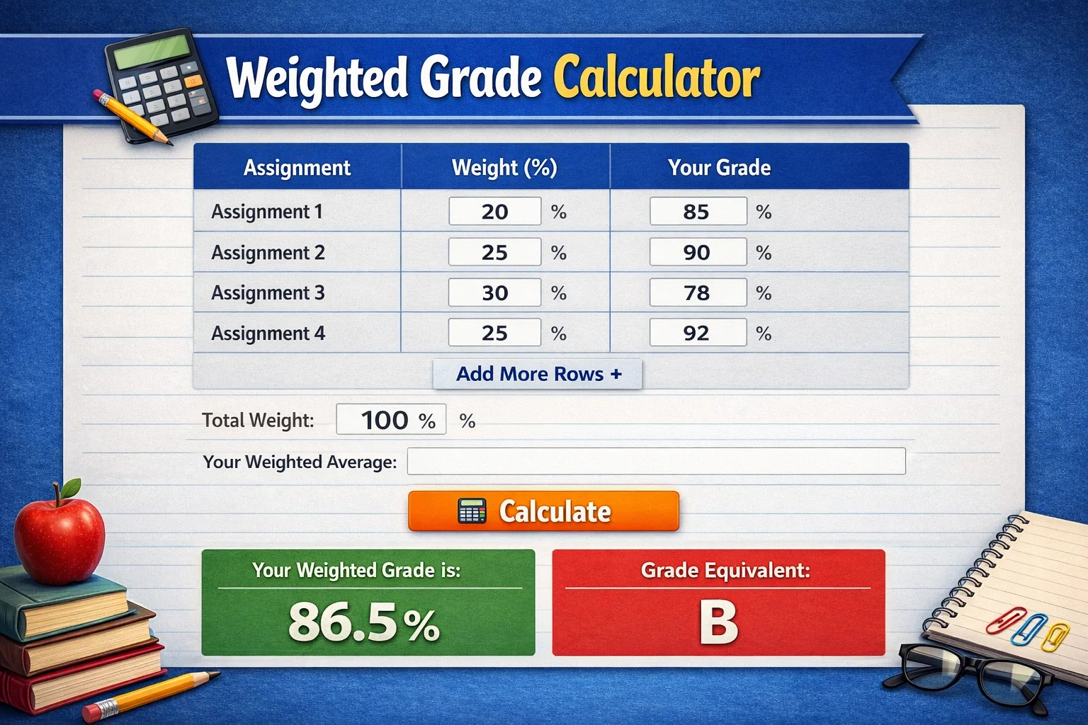 This comprehensive guide walks through everything there is to know about a grade calculator with weights from the basic concept of grade weighting to advanced methods for calculating weighted grades in Excel, Google Sheets, and online tools. By the end, readers will have a solid grasp of how weighted grade calculation works and which tools best suit their needs.